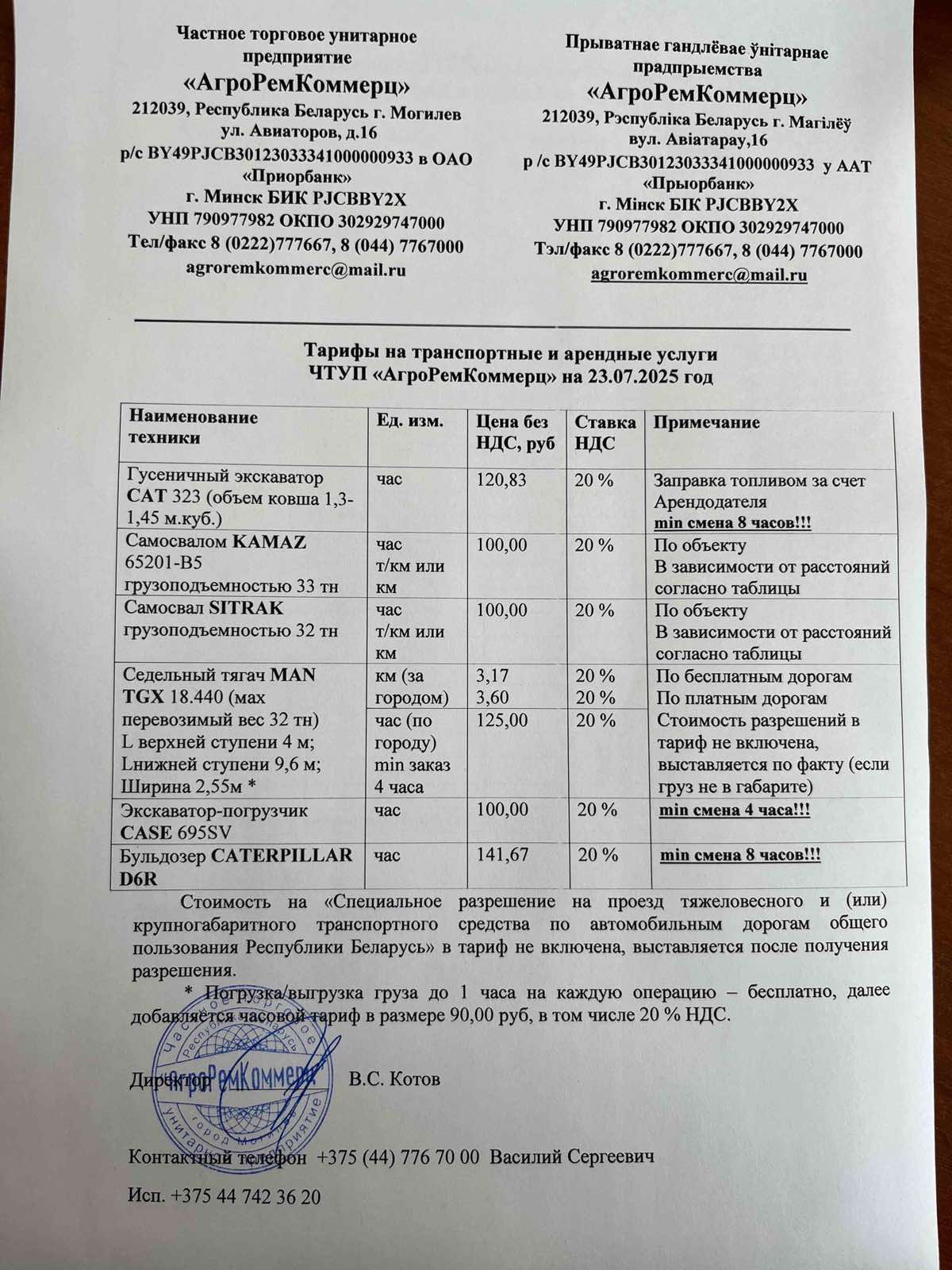ЧТУП "АгроРемКоммерц" 212039, РБ, г.Могилев ул.Авиаторов, д.16, УНП 790977982